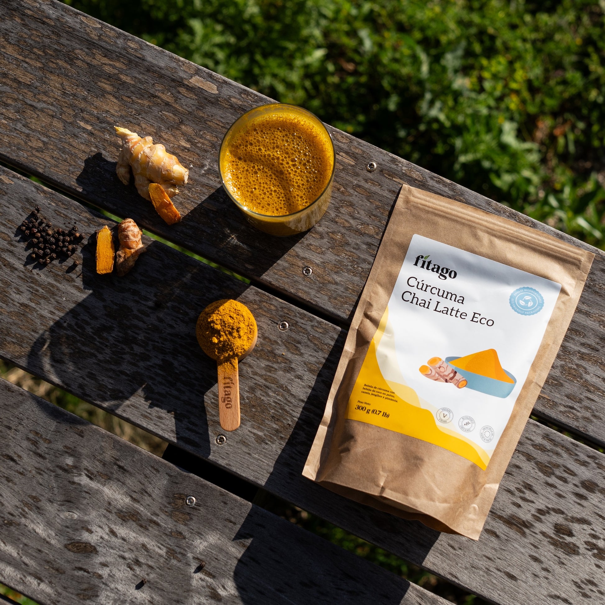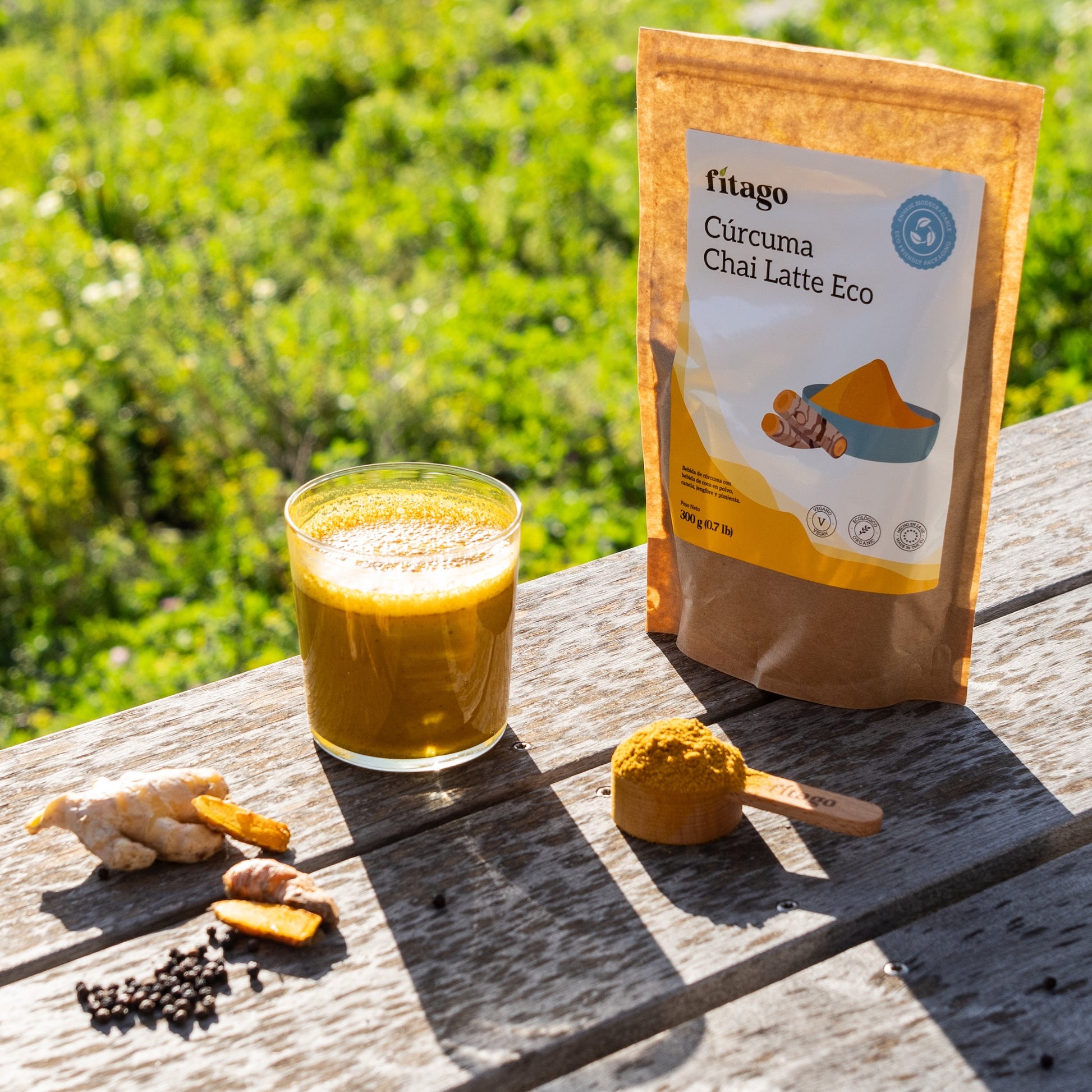 Cúrcuma Chai Latte - Mezclar de 5g a 10g de Cúrcuma Chai Latte con 300 ml de agua o bebida vegetal, caliente o fría. Consumir en cualquier momento del día. Mantener en un lugar fresco, seco y protegido delaluz directa con el saco bien cerrado.