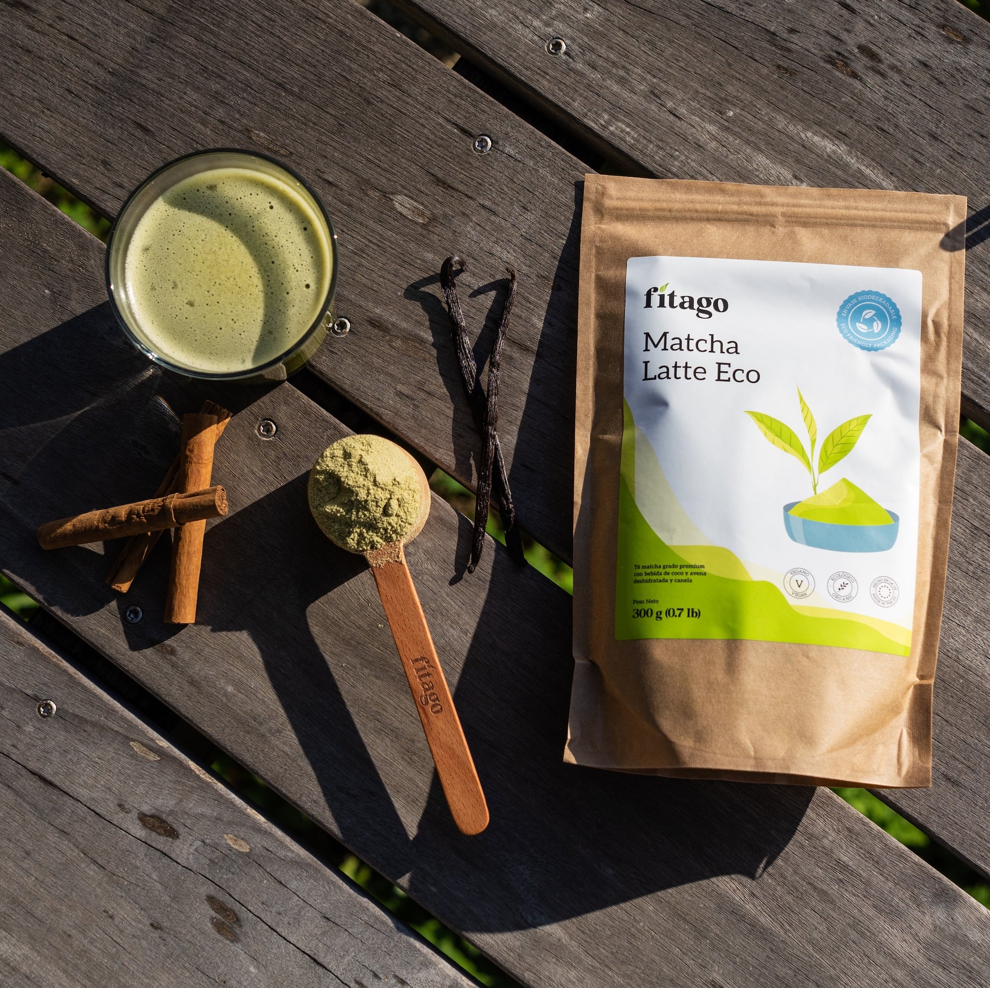 Matcha Latte - Añadir 25 g de Matcha Latte a entre 175ml y 250ml de agua fría o caliente y mezclar bien. Mantener en un lugar fresco, seco y protegido de la luz directa con el saco bien cerrado.